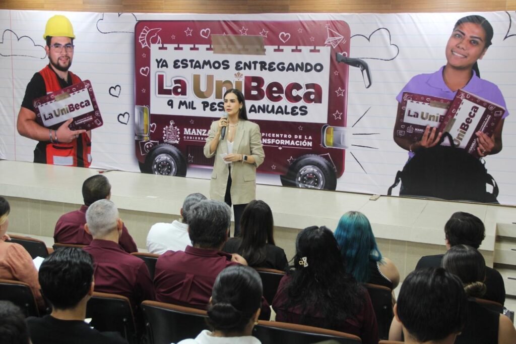 Rosi Bayardo detalló que la UniBeca beneficiará a estudiantes de licenciaturas, ingenierías y posgrados, que son originarios de Manzanillo, sin importar si cursan sus estudios en ese municipio o en otros del estado. Cada estudiante recibe un apoyo anual de 9 mil pesos, distribuido en dos entregas de 4 mil 500 pesos cada semestre, lo que representa un respaldo concreto para continuar con su formación profesional.
