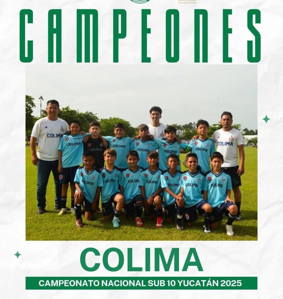 La selección de Colima 2015 de futbol SUB10, derrotó en la final a Coahuila en serie de penales y con ello se corona Campeón Nacional de futbol en la sede de Mérida, Yucatán este domingo por la mañana.