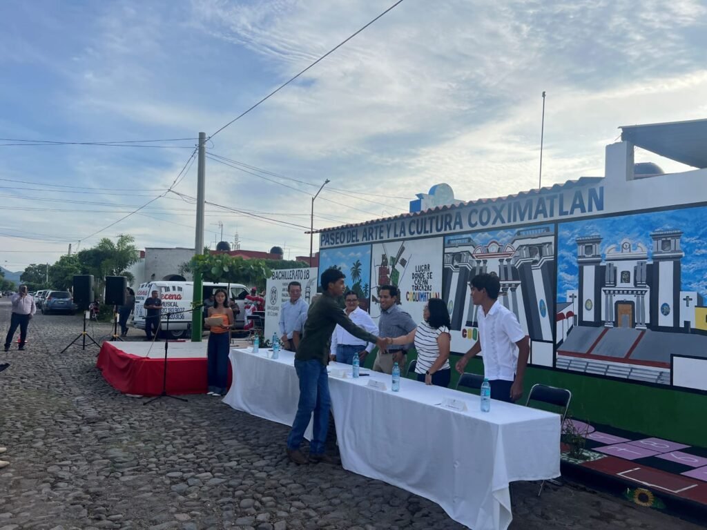 La tarde del pasado 8 de agosto, en un evento lleno de color y tradición, se inauguró el “Paseo del arte y la cultura Coximatlan” en la colonia Valle de las Huertas, Coquimatlán. El acto inaugural, realizado en la calle Arándano esquina con Av. Constitución, reunió a autoridades, estudiantes y vecinos para celebrar la creación de un mural artístico que refleja la identidad y la historia del municipio.