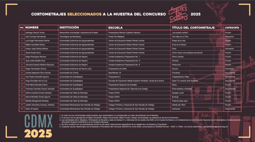 Para los estudiantes, participar en ANUIES en Corto significa no solo un reconocimiento académico, sino también la oportunidad de visibilizar problemáticas sociales y compartir sus propias miradas del mundo.