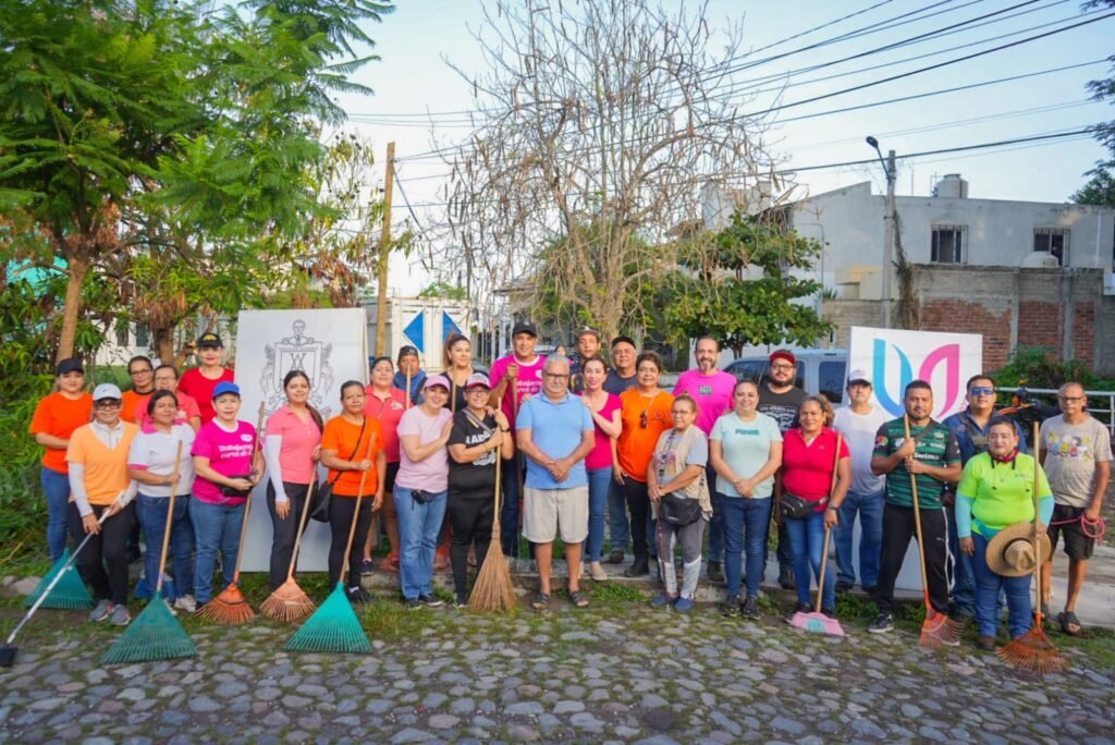Encabezados por la Presidenta Tey Gutiérrez, funcionarios de confianza, trabajadores sindicalizados y vecinas y vecinos de las colonias Santa Cristina, El Haya y Villas de Oro, realizaron trabajos de limpieza en espacios públicos de esos fraccionamientos de Villa de Álvarez.
