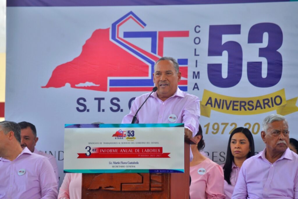 En el marco del 3er Informe Anual de Labores, Martín Flores Castañeda, Secretario General del Sindicato de Trabajadores al Servicio del Gobierno del Estado (STSGE), fue claro al expresar que en la actualidad el STSGE está fuerte, unido, tiene autonomía sindical y sobre todo finanzas sanas, derivado de la correcta administración de las cuotas sindicales, mismas que se encuentran publicadas en la página de Transparencia.
