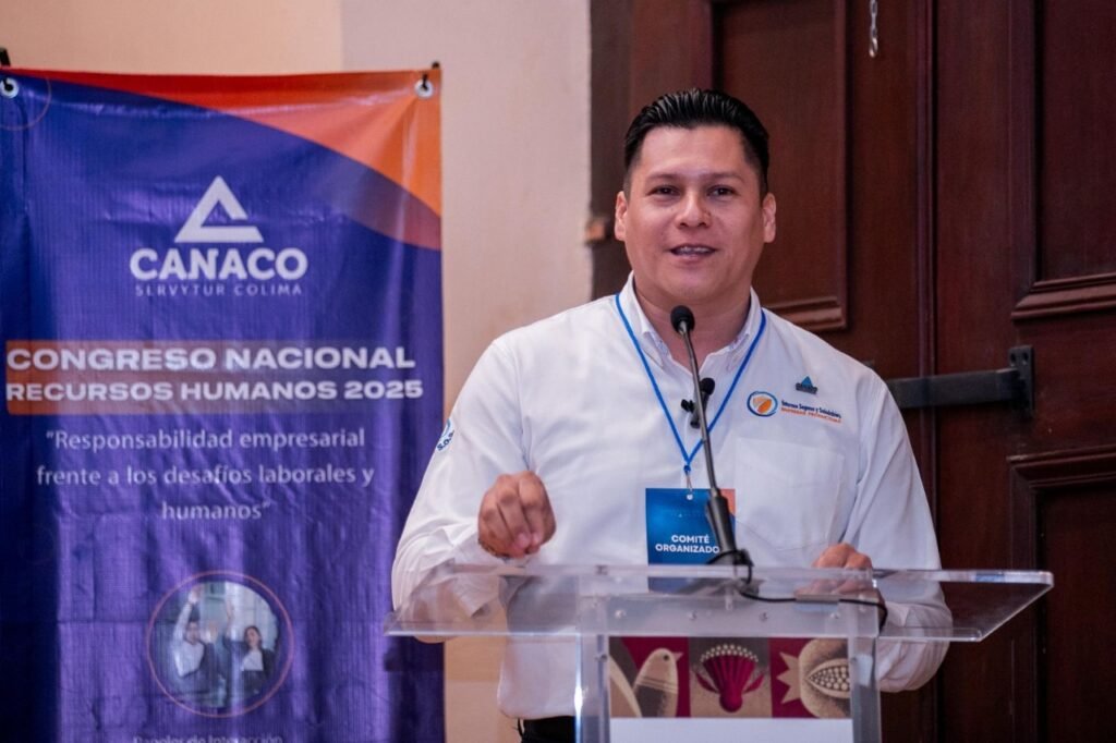 Felicitó a Gabriela Elena Gómez Brun, presidenta de la Canaco Servytur Colima, por haber escalado lo que inició como un Foro de Recursos Humanos al nivel de Congreso Nacional en el que participan especialistas, instituciones y liderazgos del sector empresarial, para compartir experiencias, generar vínculos estratégicos y reflexionar sobre los retos actuales en materia de talento humano.