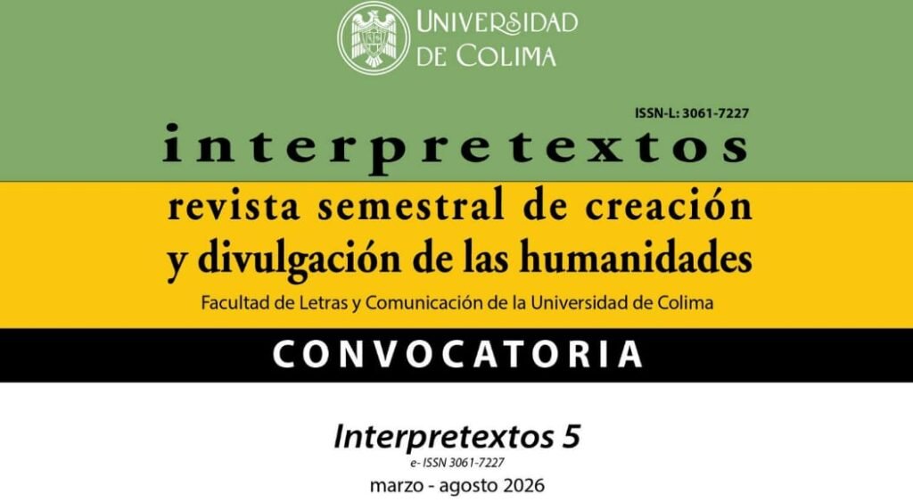 La revista Interpretextos, publicación semestral editada por la Facultad de Letras y Comunicación de la Universidad de Colima, lanzó la convocatoria para colaborar en su número 5, correspondiente al periodo marzo-agosto 2026. La temática general girará en torno a “Las humanidades: su relación interdisciplinar con las letras hispanoamericanas, el lenguaje, el periodismo y la comunicación”.