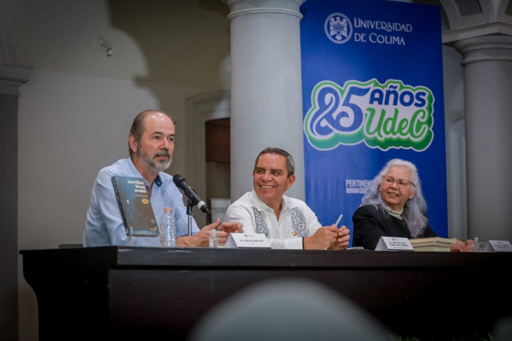 - El libro fue presentado en la sala del Vitral de la Pinacoteca Universitaria por el rector de la Universidad de Colima, Christian Torres Ortiz Zermeño y por la coordinadora general de Investigación de esta casa de estudios, Xóchitl Trujillo
