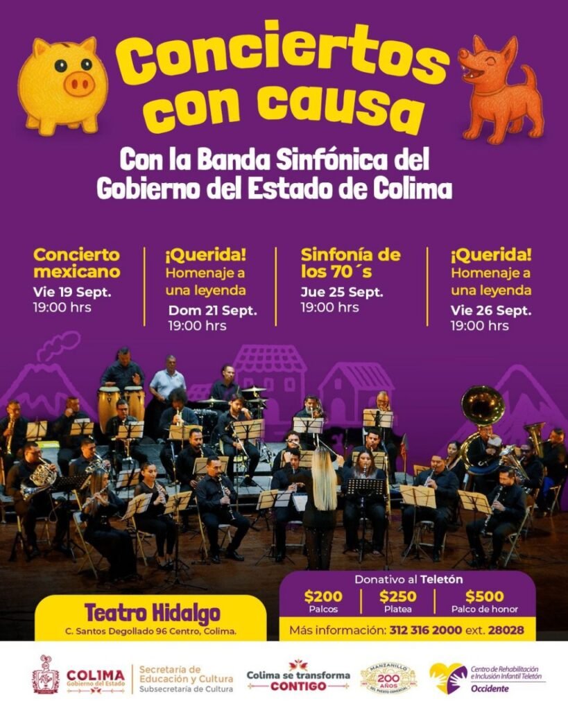 La Subsecretaría de Cultura del Gobierno del Estado de Colima presentó la cartelera de Conciertos con Causa que ofrecerá la Banda Sinfónica estatal para sumarse al Boteo Teletón 2025 y contribuir a la creación del Centro de Rehabilitación e Inclusión Infantil Teletón (CRIT) en la entidad, con el que se busca beneficiar también a las poblaciones de Jalisco y Michoacán.