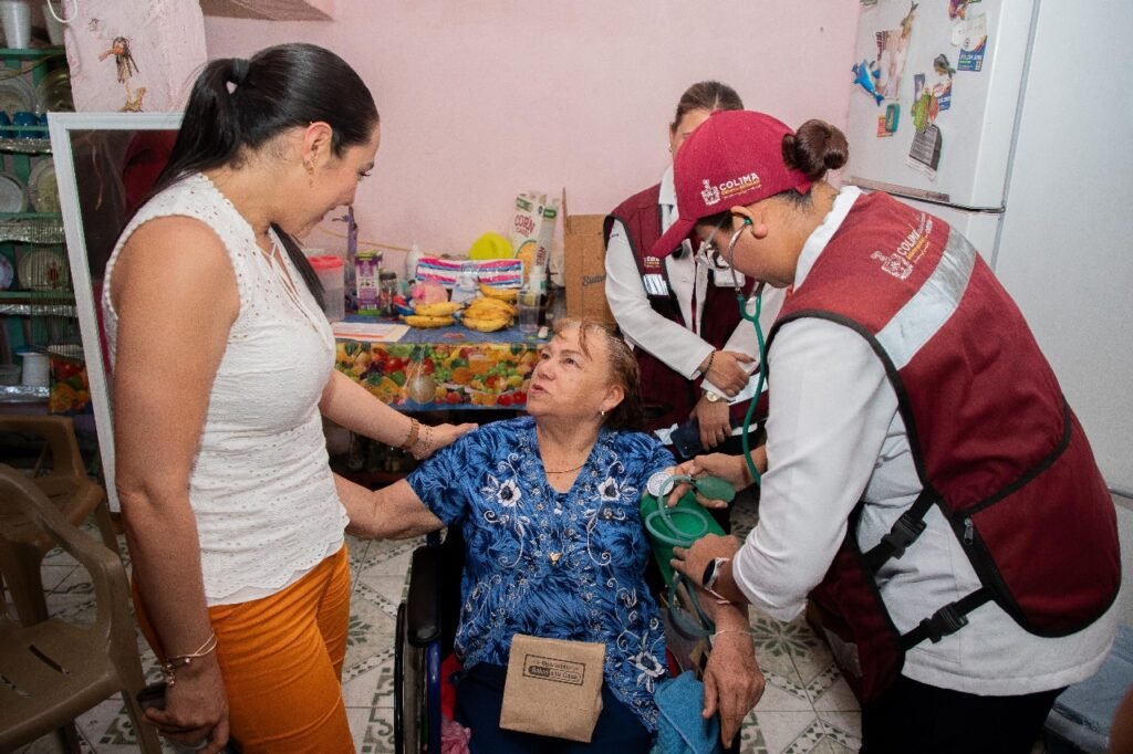 La gobernadora de Colima, Indira Vizcaíno Silva, visitó este miércoles a María Guadalupe Ortiz Camarena de 78 años y María Jesús Cuevas Ramírez de 77, en la cabecera municipal de Tecomán, quienes son beneficiarias de Operación Salud a tu Casa, estrategia de la Secretaría de Salud estatal que brinda atención médica y de enfermería gratuita a domicilio, a personas con dificultad para acudir a los servicios de salud en las unidades de atención.