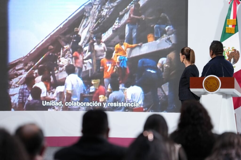 Previo a la conferencia matutina, encabezó el izamiento a media asta de la bandera nacional en la Plaza de la Constitución, en memoria de las víctimas de los sismos del 19 de septiembre de 1985 y de 2017.