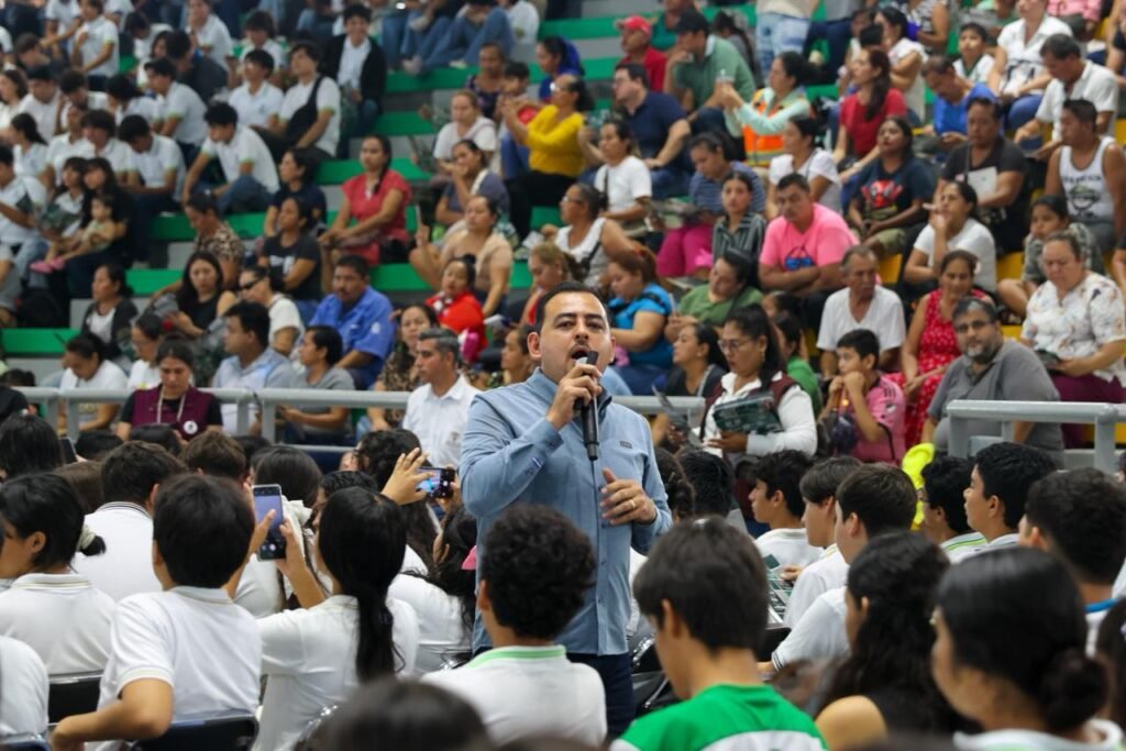 *El Coordinador Nacional de Becas Bienestar, cerró las Asambleas Informativas en el Polideportivo de Manzanillo, Colima.