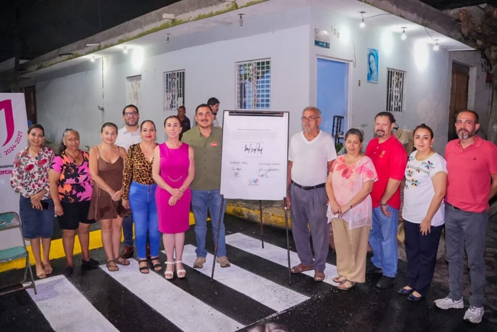 Villa de Álvarez, Col.- La Presidenta Tey Gutiérrez Andrade entregó a vecinas y vecinos la obra de rehabilitación de pavimento con asfalto de la calle Josefa Ortiz de Domínguez, desde la avenida Benito Juárez hasta la calle Cristóbal Colón.