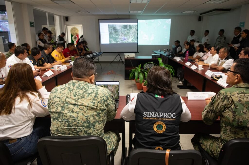 En la sesión que presidió la titular de la CNPC, Laura Velázquez Alzúa, participaron representantes de los tres niveles de gobierno, Secretaría de Marina (Semar), Secretaría de la Defensa Nacional (Sedena), Guardia Nacional, Secretaría de Infraestructura, Comunicaciones y Transportes (SICT), Sistema Nacional de Protección Civil (Sinaproc), Comisión Federal de Electricidad (CFE), Conagua, así como UEPC, Unidades Municipales de Protección Civil; las Secretarías de Salud, Turismo y Educación, así como IMSS-Bienestar y DIF Estatal, entre otras dependencias.