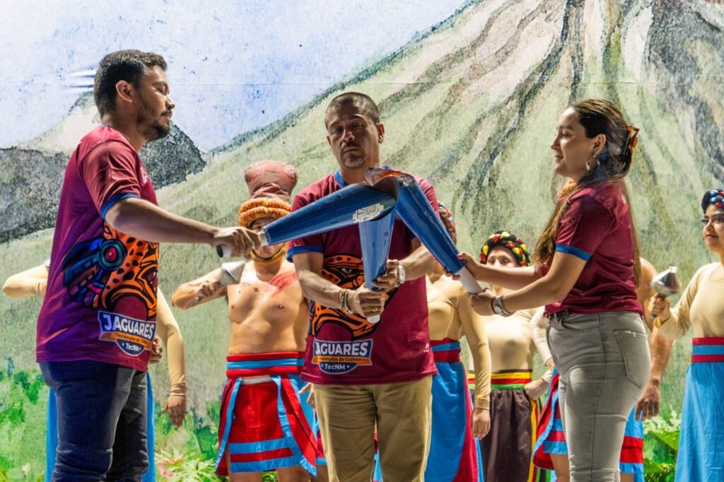 Posteriormente se llevó la antorcha encendida hasta el Tecnológico de Colima, lo que es parte del ritual que simboliza la renovación y la aceptación de nuevos retos.