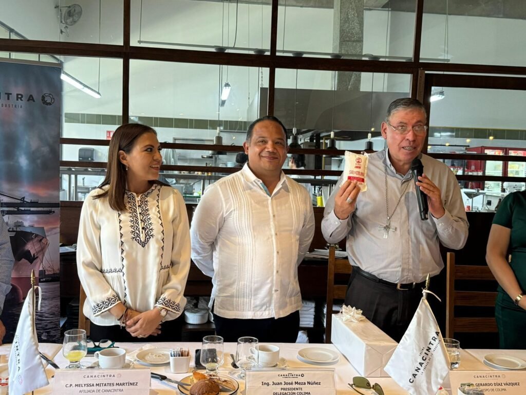 Colima, Col.- La Cámara Nacional de la Industria de la Transformación (CANACINTRA) Colima llevó a cabo su tradicional Desayuno Industrial, encuentro que en esta ocasión contó con la asistencia destacada del Obispo de Colima, Monseñor Gerardo Díaz Vázquez, con quien se abordaron temas fundamentales sobre la promoción de una cultura de paz, la recuperación de valores familiares y el fortalecimiento del tejido social desde el ámbito empresarial.