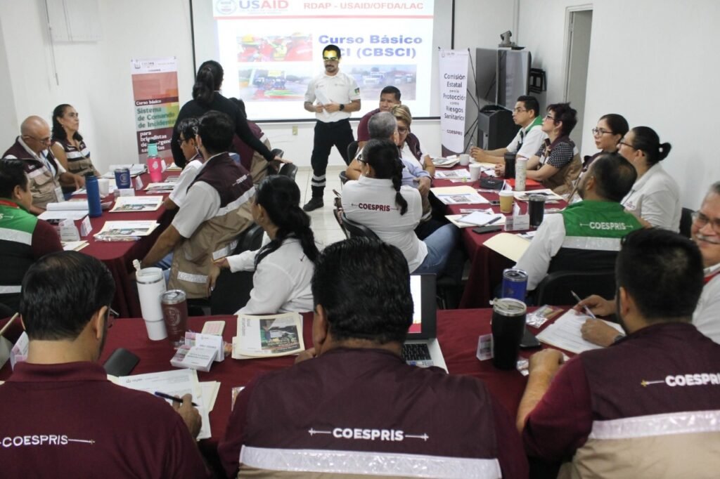 El curso impartido por personal calificado en gestión de emergencias sanitarias de la Coespris y de la Unidad Estatal de Protección Civil (UEPC), abordó temas clave como: mando y planificación, operaciones y logística, administración y finanzas, seguridad, manejo de información pública y comunicación interinstitucional.