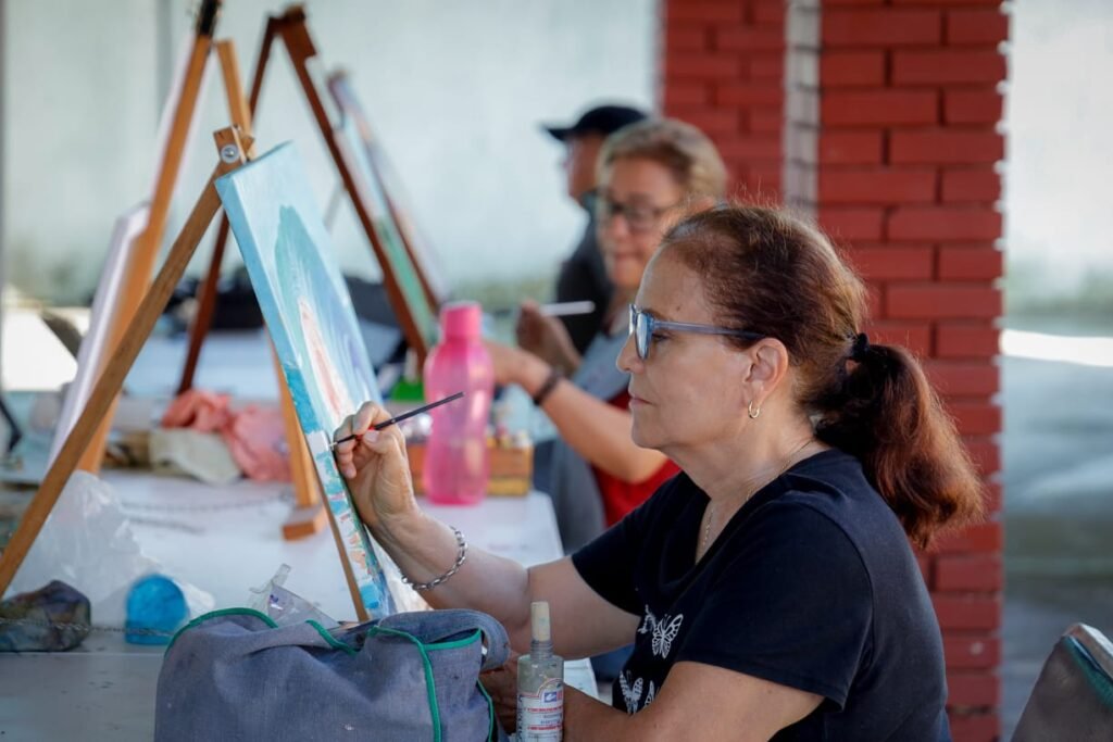 Por su parte, Lupita Jiménez, participante desde hace un año, expresa con emoción: “Llegué sin saber nada de óleo. Me recibieron con tanto cariño que decidí quedarme. Pintar me da paz, me fortalece. Es una sensación de libertad”.