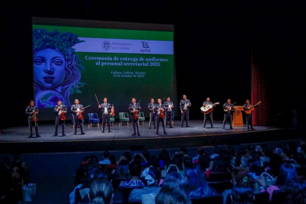 El personal secretarial de la Universidad de Colima recibió 315 paquetes de uniformes, con una inversión total de 747 mil 243 pesos, y disfrutó la presentación del Mariachi UdeC, durante un acto encabezado por el rector Christian Jorge Torres Ortiz Zermeño, quien destacó la labor esencial que este personal realiza en el funcionamiento cotidiano de la institución.