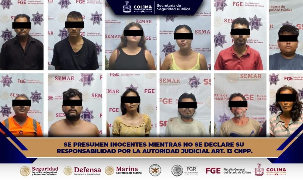 Como resultado de un operativo coordinado entre autoridades federales, estatales y municipales, la Secretaría de Seguridad Pública (SSP) del Gobierno del Estado de Colima logró la detención de doce personas en distintos puntos de los municipios de Manzanillo, Colima y Tecomán, por su presunta participación en delitos contra la salud.
