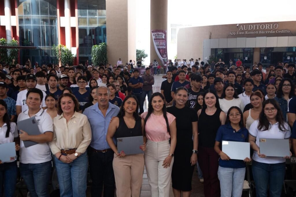 Indira Vizcaíno indicó que los equipos que están recibiendo son de buenas marcas, además de que se buscó que cuenten con todas las características necesarias para ayudarles a salir adelante en la etapa formativa que están viviendo; “y que lo hacemos con toda la convicción de que tenemos mucha fe en ustedes”.
