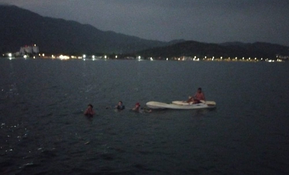 Durante la operación, el personal naval localizó a tres personas sujetas a un kayak color amarillo, quienes manifestaron encontrarse exhaustas debido a la corriente marina y al esfuerzo físico realizado, los rescatistas efectuaron maniobras de aproximación y embarcaron a las tres personas junto con su kayak, brindándoles apoyo y seguridad a bordo.