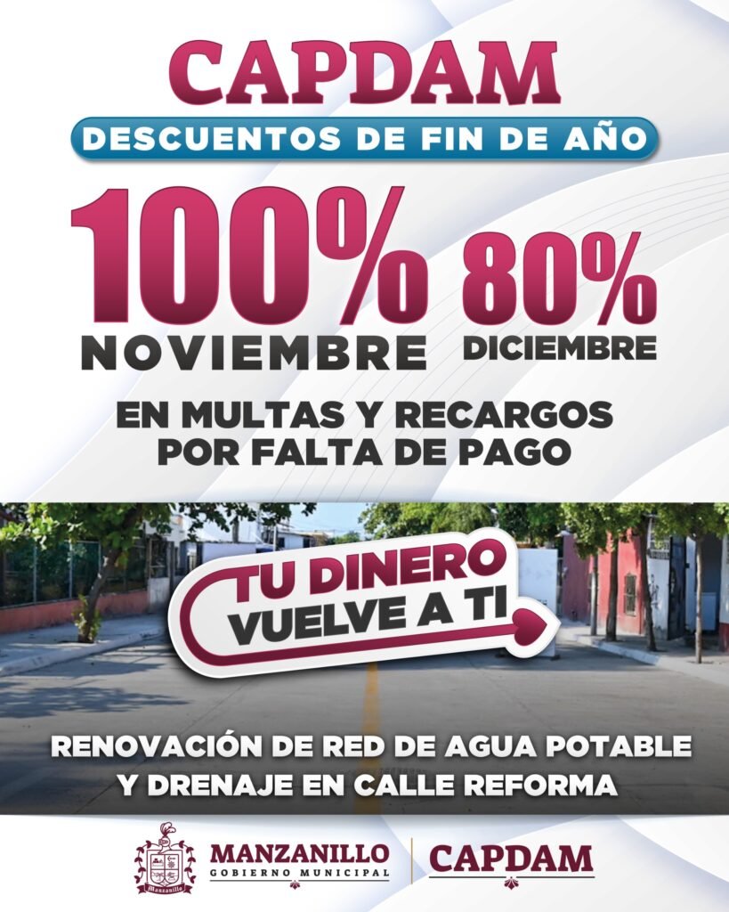 La Comisión de Agua Potable, Drenaje y Alcantarillado de Manzanillo (Capdam), anunció una serie de incentivos fiscales que estarán disponibles para toda la ciudadanía durante los últimos dos meses del presente año.