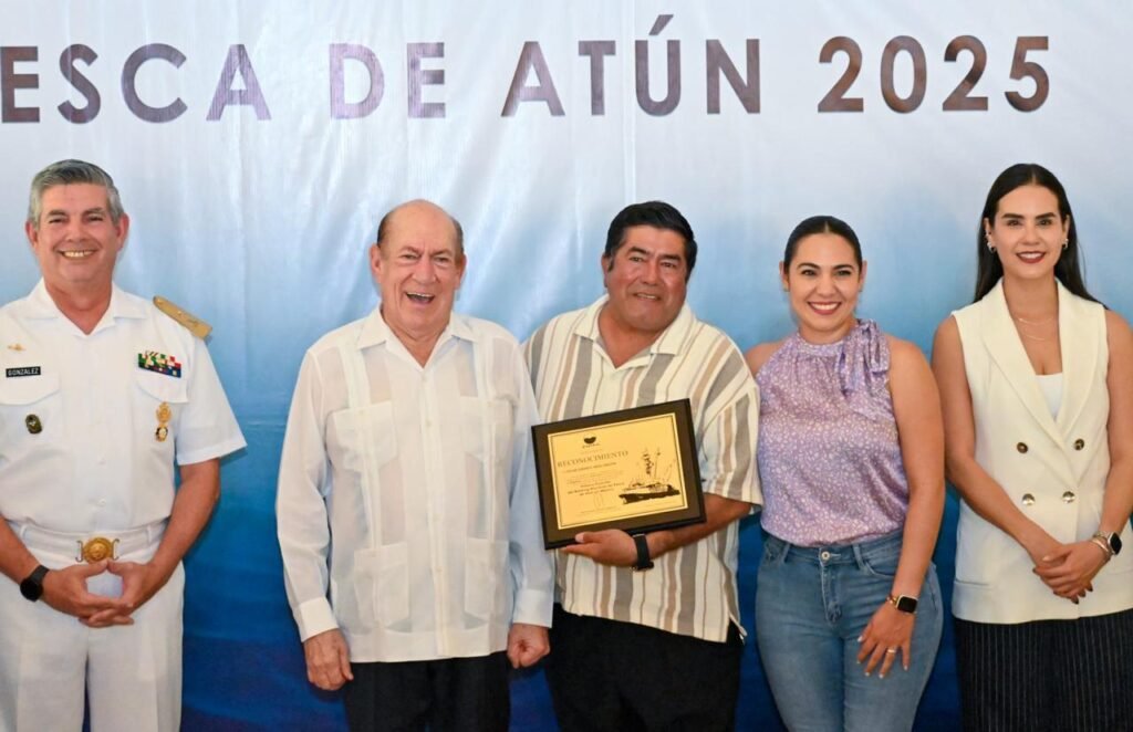 La presidenta municipal de Manzanillo, Rosa María Bayardo Cabrera, participó en el evento de fin de temporada de “Pesca de Atún 2025” de Grupomar, donde se entregaron reconocimientos a pescadores por su gran labor durante casi 10 meses.