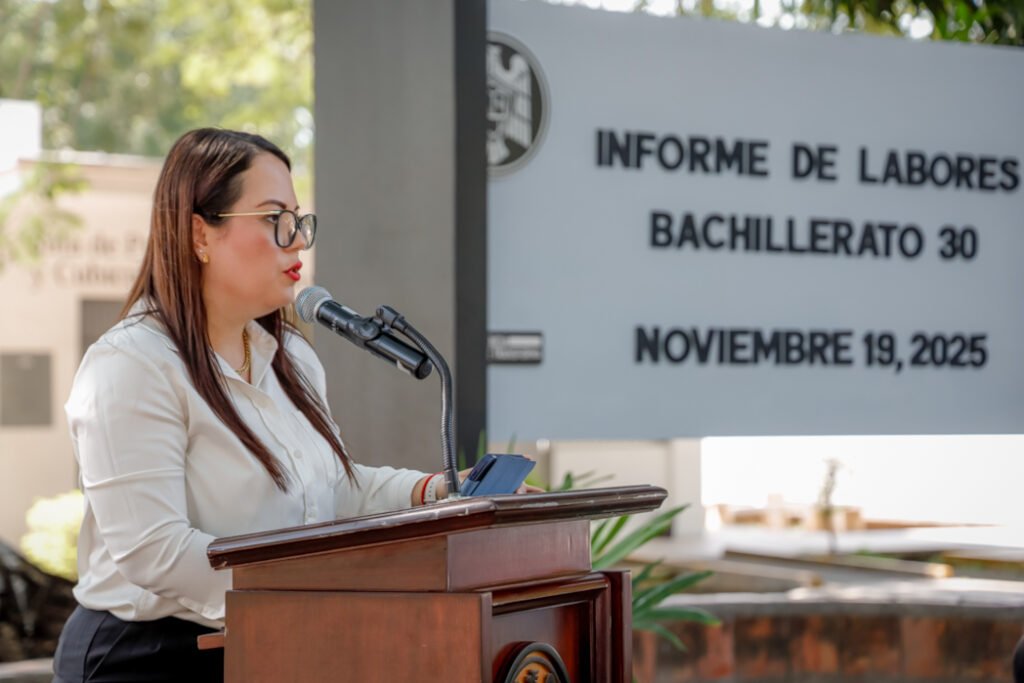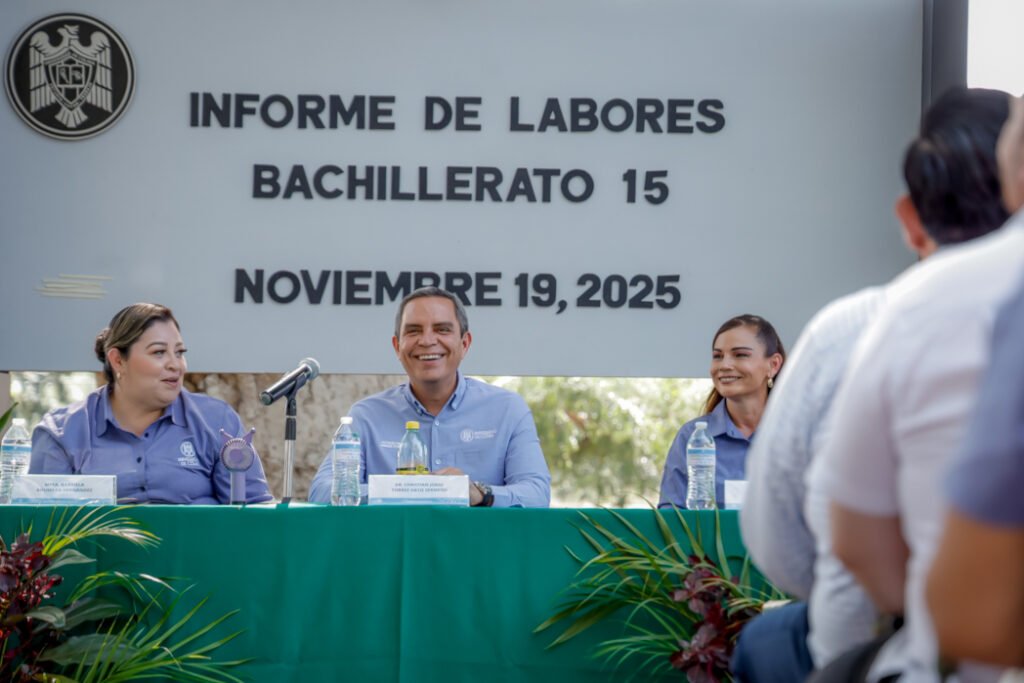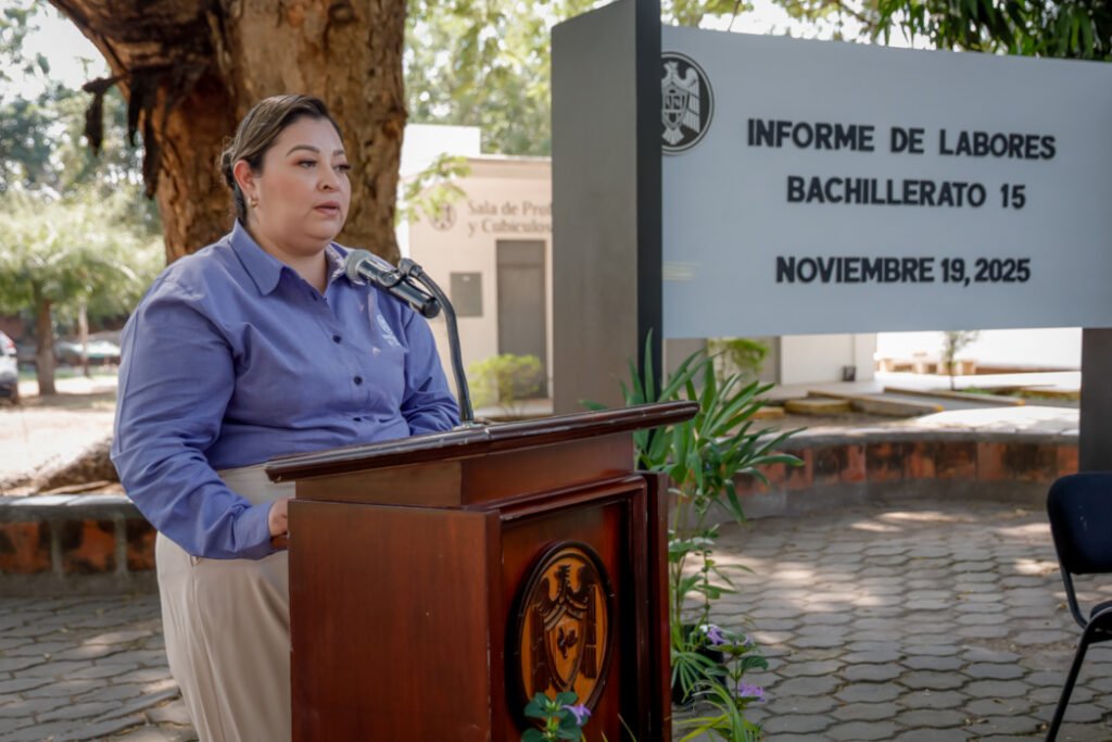 Martha Gabriela Ahumada, en evento aparte, compartió que el Bachillerato 15 es un plantel “que mira hacia el futuro con determinación, responsabilidad y espíritu universitario, porque aquí en cada salón, en cada proyecto y cada estudiante, late la fuerza de la educación y el deseo de transformar nuestro mundo”.