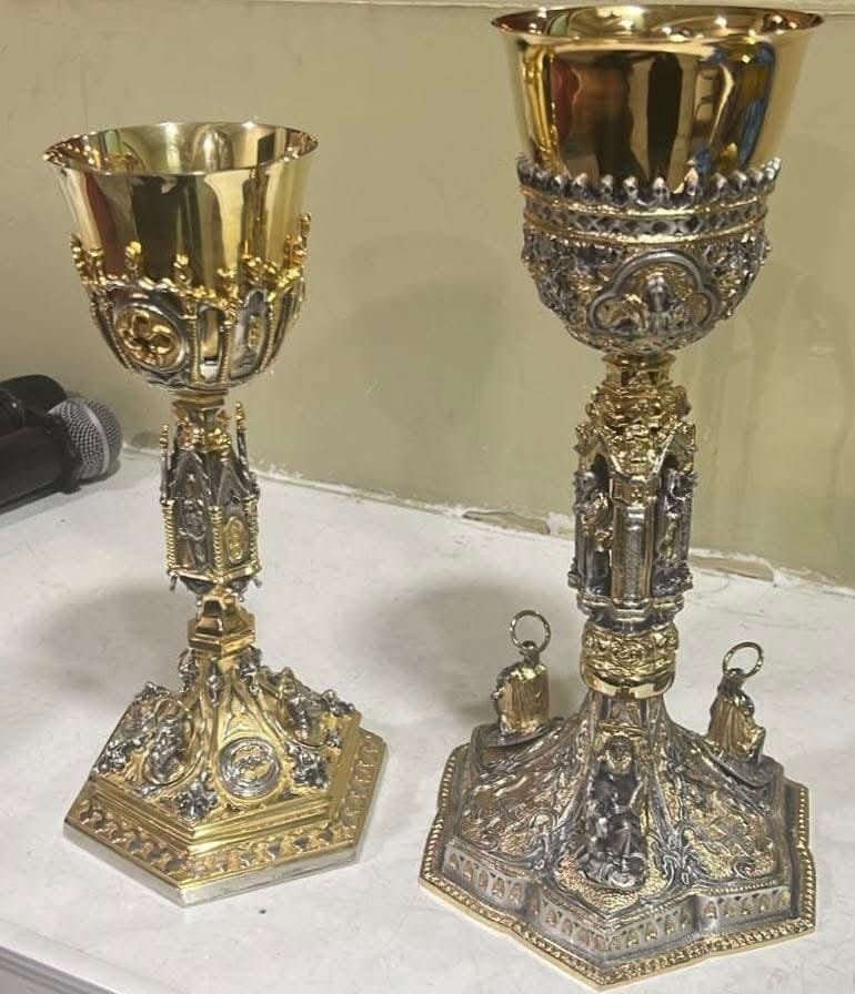 De acuerdo con los reportes, los responsables se llevaron dos cálices de plata con baño de oro y un evangeliario adornado con chapa de oro y piedras, piezas de uso religioso habitual y de gran significado para la comunidad parroquial.