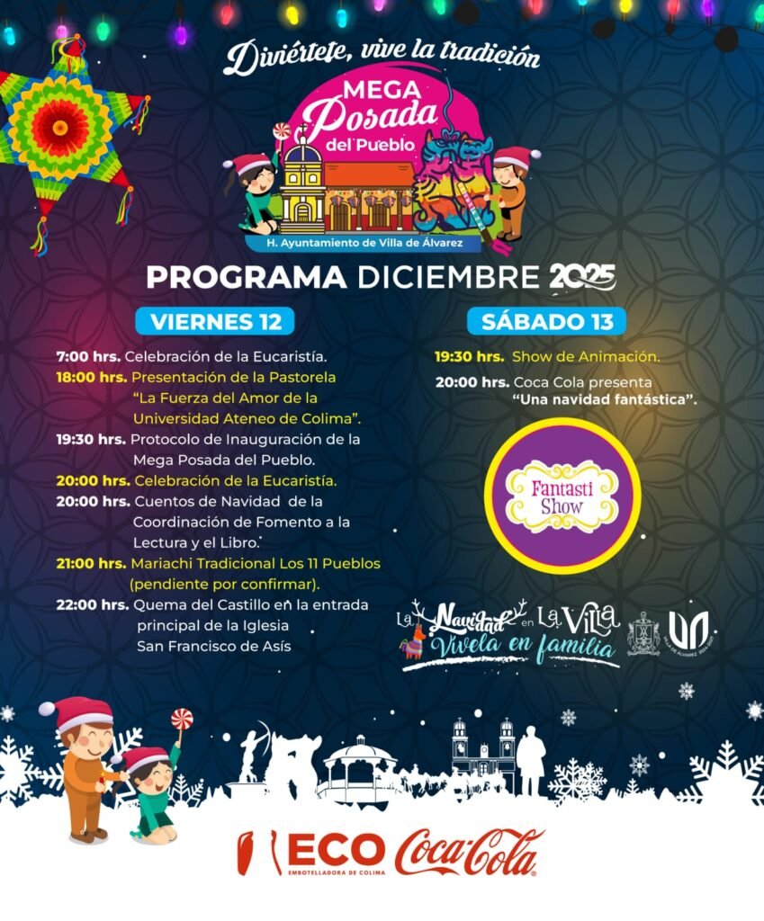 La Mega Posada del Pueblo 2025 cerrará sus actividades el sábado 13 de diciembre, con un show de animación que iniciará a las 7:30 PM y concluirá con la presentación estelar de Fantasti Show, cuyo espectáculo será patrocinado por la embotelladora de Coca Cola.