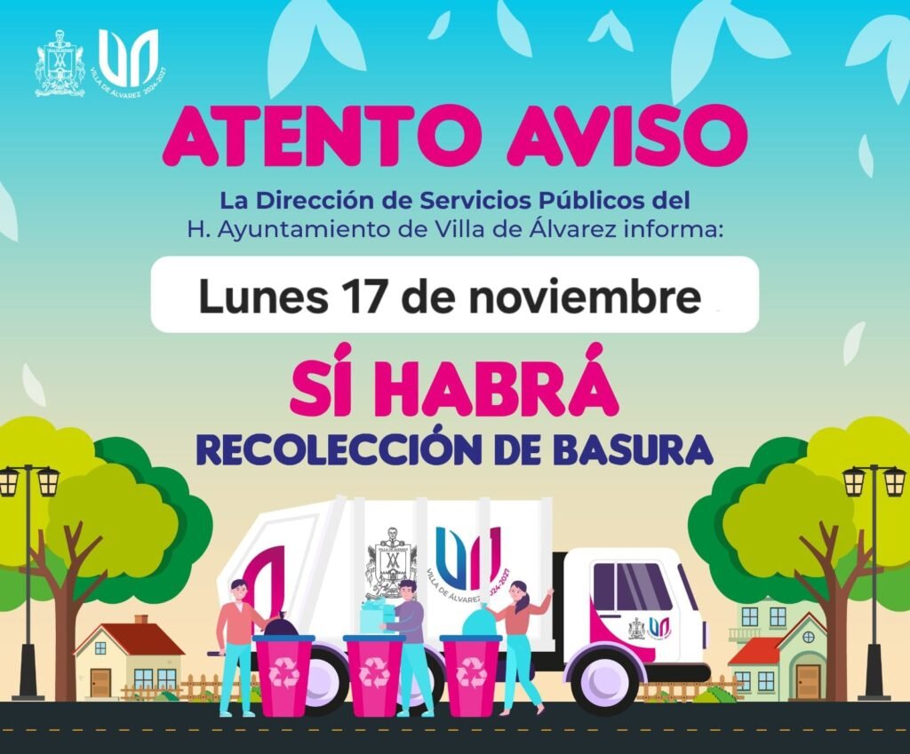 Villa de Álvarez, Col.- El Ayuntamiento de Villa de Álvarez, a través de la Dirección General de Servicios Públicos, informa que este lunes 17 de noviembre de 2025 la recolección de basura en las colonias y comunidades del municipio se realizará de manera normal.No obstante ser un día de asueto, las rutas de recolección de […]