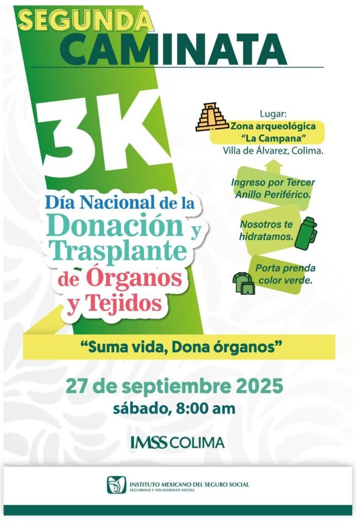 Invita IMSS Colima a participar en Caminata Familiar “Suma Vida, Dona Órganos”