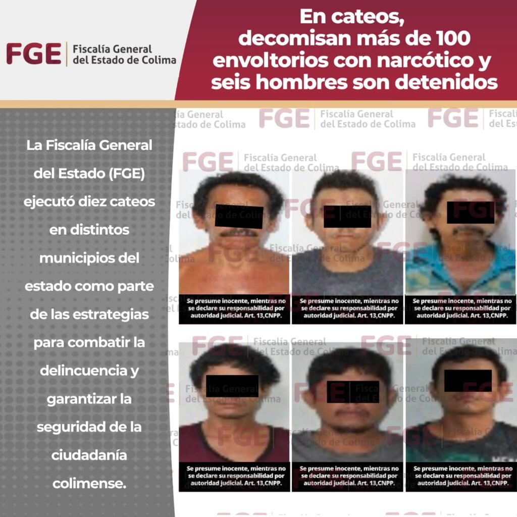 En cateos, decomisan más de 100 envoltorios con narcótico yseis hombres son detenidos