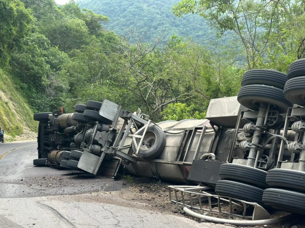 Atiende UEPC Colima volcadura de pipa con diésel en carretera Villa de Álvarez-Minatitlán; no hay riesgo para la población