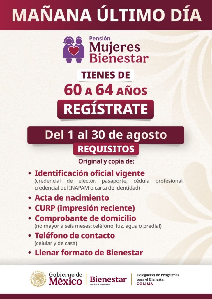 •Los Módulos de Bienestar atienden de lunes a sábado, informa la secretaria de Bienestar La secretaria de Bienestar, Ariadna Montiel Reyes, exhortó a las adultas mayores de 60 a 64 años a registrarse en los Módulos de Bienestar a la Pensión Mujeres Bienestar, el registro concluye el 30 de agosto, a la fecha un millón […]