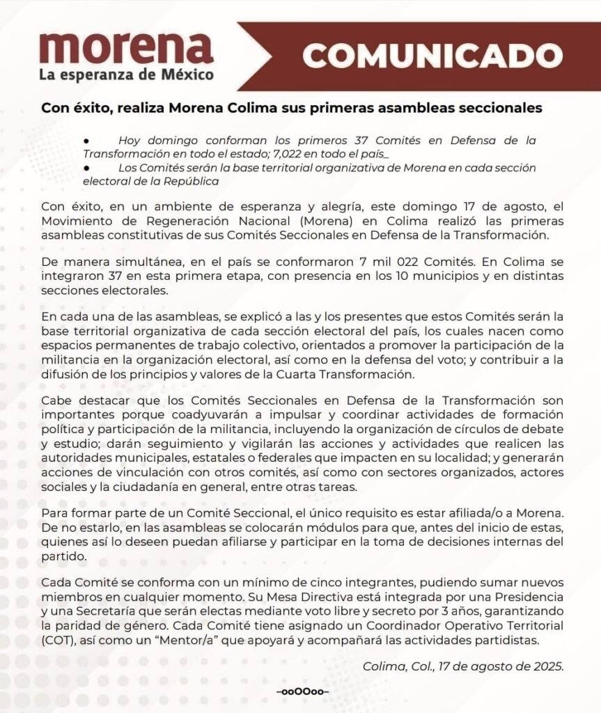 Con éxito, realiza Morena Colima sus primeras asambleas seccionales