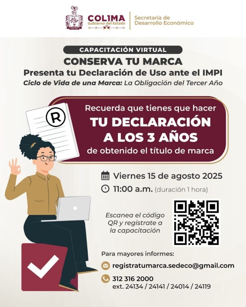 El Gobierno del Estado de Colima, a través de la Secretaría de Desarrollo Económico (Sedeco), invita a las personas emprendedoras, empresarios y titulares de marcas registradas a participar en la capacitación virtual ‘Conserva tu marca: presenta tu declaración de uso ante el IMPI’, que se llevará a cabo este viernes 15 de agosto a partir […]
