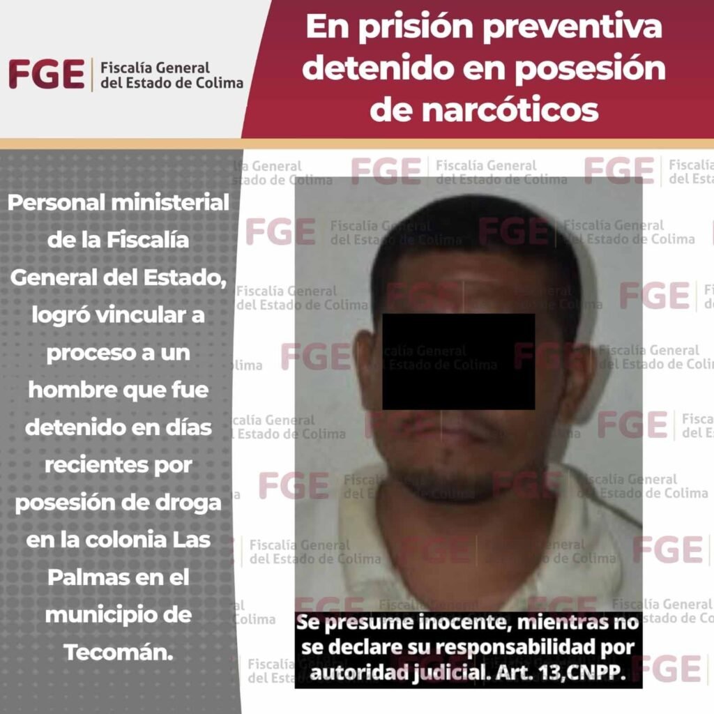 Personal ministerial de la Fiscalía General del Estado, logró vincular a proceso a un hombre que fue detenido en días recientes por posesión de droga en la colonia Las Palmas en el municipio de Tecomán. Por resolución del Juez de Control conocedor de la causa penal, el imputado, Martin “N”, enfrentara un proceso bajo la […]