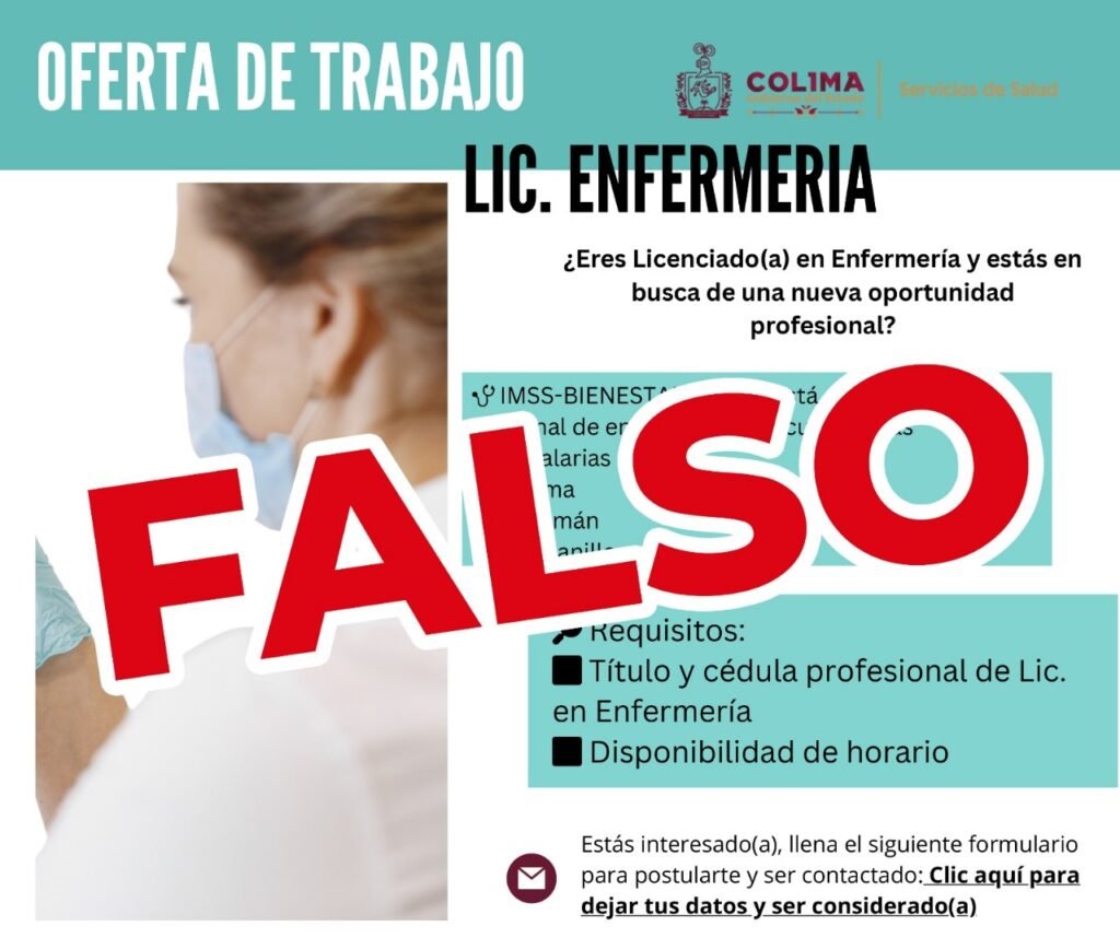 Sector Salud Colima alerta sobre información falsa en redes, sobre supuesta oferta de trabajo