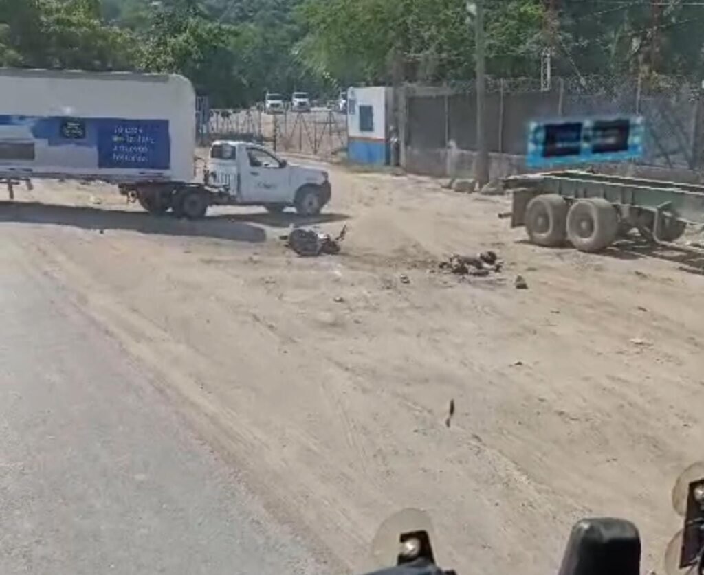 Muere motociclista al impactar camioneta de reparto en la carretera libre a la salida de El Colomo, en Manzanillo