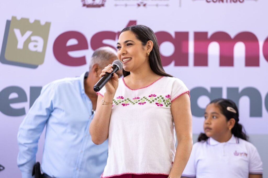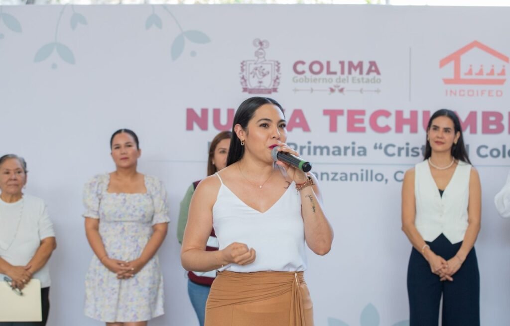 Gobernadora entrega techumbre en primaria de Manzanillo; se invierten más de 2 mdp