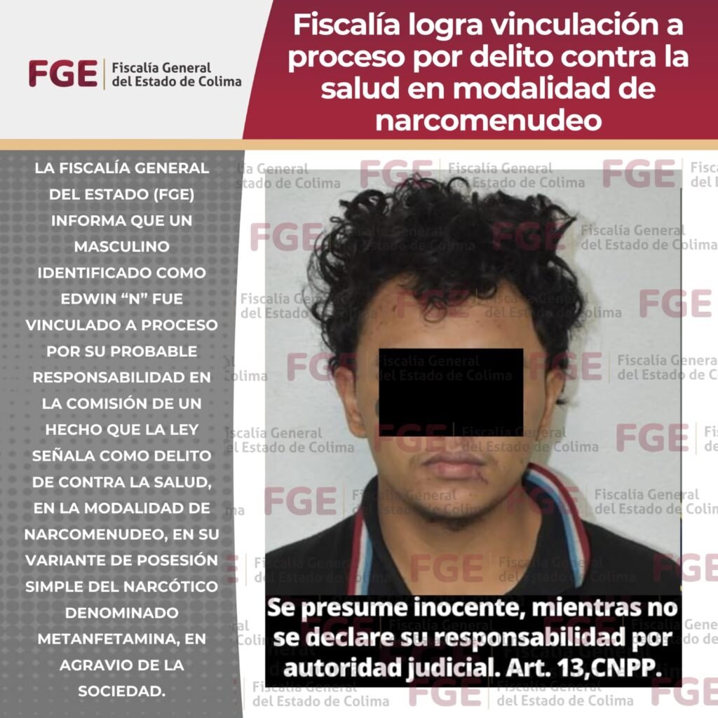 La Fiscalía General del Estado (FGE) informa que un masculino identificado como Edwin “N” fue vinculado a proceso por su probable responsabilidad en la comisión de un hecho que la ley señala como delito de contra la salud, en la modalidad de narcomenudeo, en su variante de posesión simple del narcótico denominado metanfetamina, en agravio […]