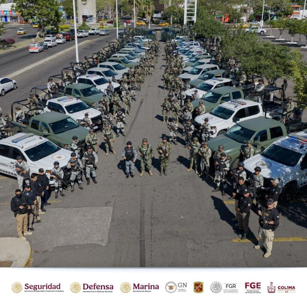 En estas tareas participaron 329 elementos y un número importante de vehículos de la Secretaría de la Defensa Nacional (Defensa), Secretaría de Marina (Semar), la Guardia Nacional (GN), el Centro Nacional de Inteligencia (CNI), la Fiscalía General de la República (FGR), la Fiscalía General del Estado (FGE), la Secretaría de Seguridad Pública (SSP) del Gobierno del Estado de Colima y el Centro de Coordinación, Control, Comando, Cómputo, Comunicación e Inteligencia (C5i), con el apoyo de equipo de comunicaciones especiales y sistemas tecnológicos de vigilancia aérea.