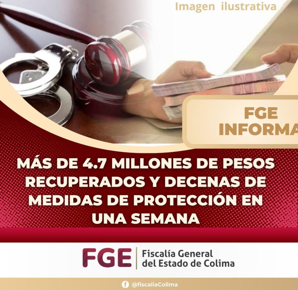 La Fiscalía General del Estado de Colima, a través de la Vice Fiscalía de Justicia Familiar y Civil, Soluciones Alternas, Prevención del Delito y Atención a Víctimas, informó los principales resultados obtenidos durante el periodo comprendido del 17 al 23 de enero de este 2026, reflejando el trabajo permanente en favor de la protección, atención y restitución de derechos de las víctimas de los delitos.