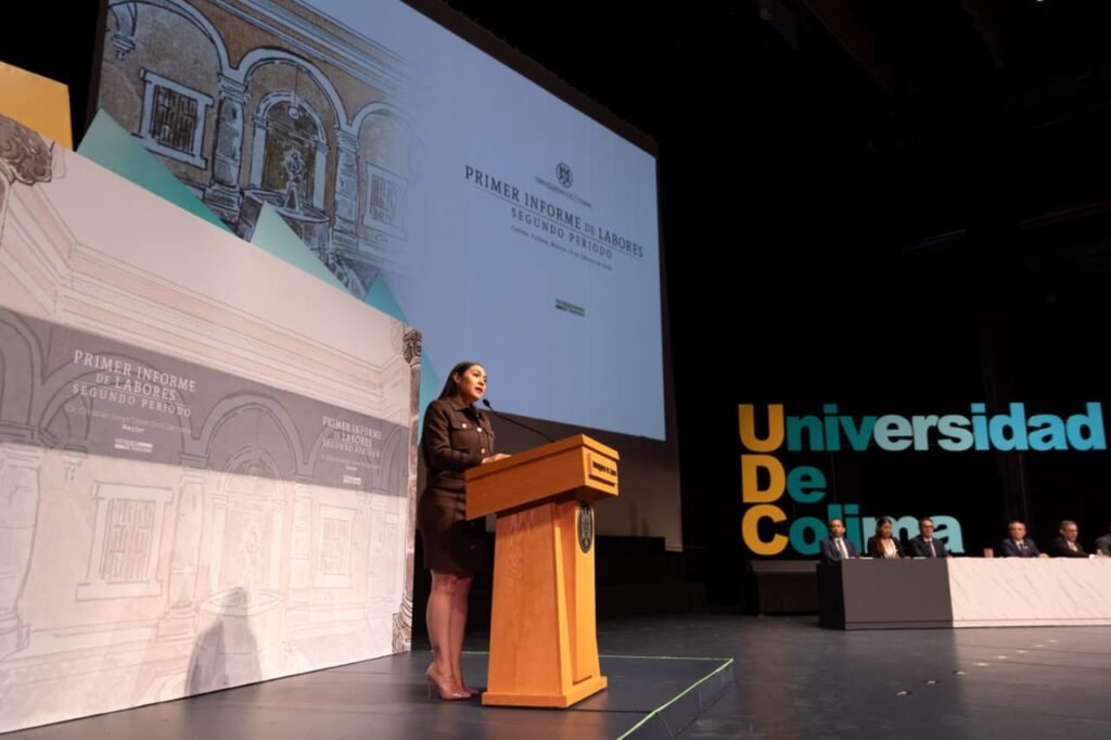 La gobernadora de Colima, Indira Vizcaíno Silva, asistió este viernes al primer informe de labores del segundo periodo del rector de la Universidad de Colima (UdeC), Christian Jorge Torres Ortiz Zermeño, en el Teatro Universitario ‘Coronel Pedro Torres Ortiz’; la mandataria señaló que en la entidad se trabaja en coordinación con la Máxima Casa de Estudios para abatir la deserción escolar en nivel superior a través de la ampliación de cobertura y apoyos a través de programas como #ColiBecas.