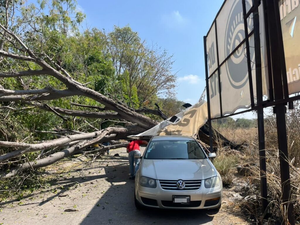 Los propietarios del predio, solicitaron el apoyo del Ayuntamiento de Colima, por lo que brigadas de la Dirección de Parques y Jardines que dirige Alejandro Velasco, acudieron al lugar y procedieron a retirar el árbol caído.