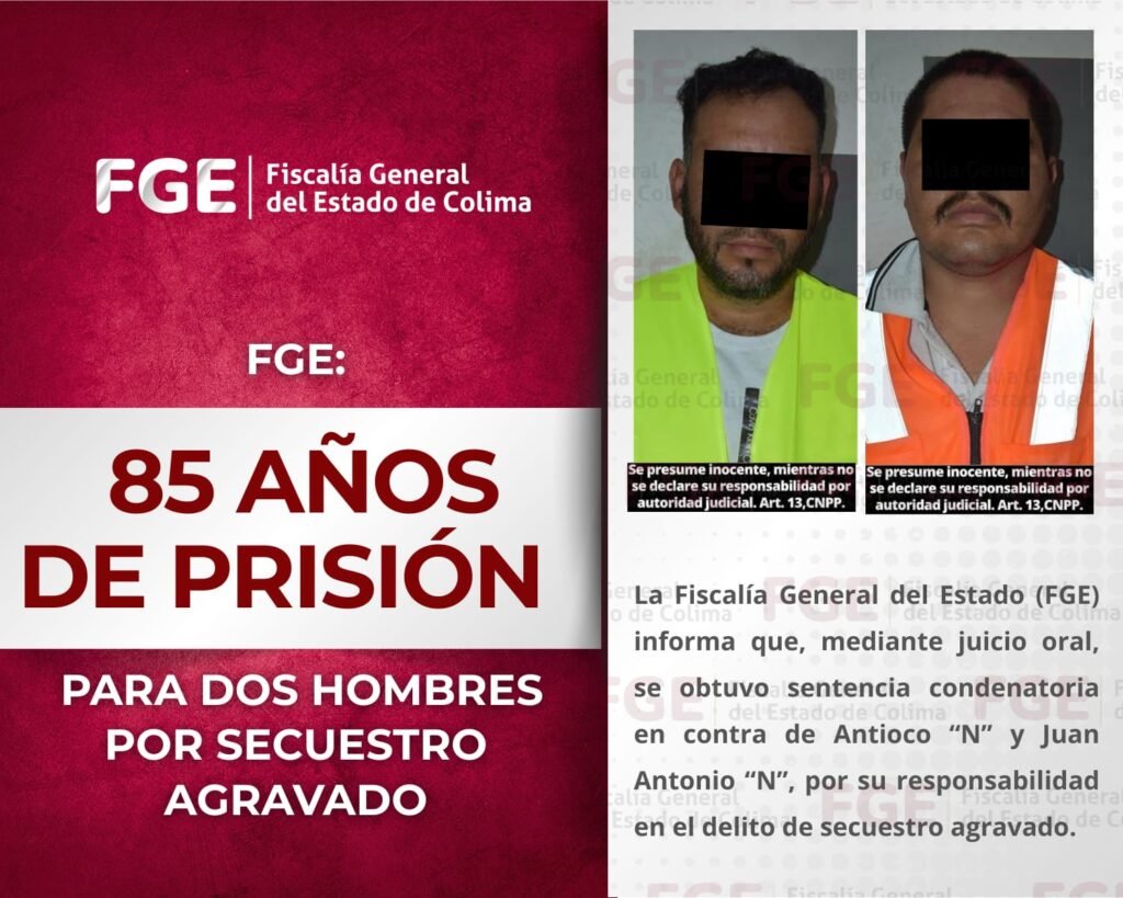 La Fiscalía General del Estado (FGE) informa que, mediante juicio oral, se obtuvo sentencia condenatoria en contra de Antioco “N” y Juan Antonio “N”, por su responsabilidad en el delito de secuestro agravado.
