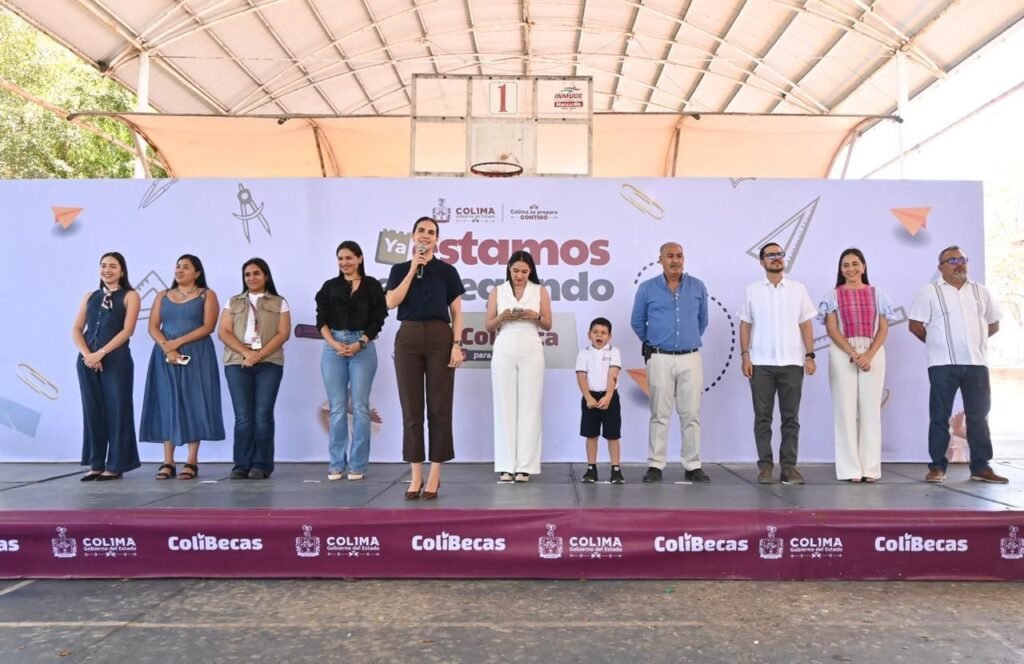 La presidenta municipal de Manzanillo, Rosa María Bayardo Cabrera, participó este jueves en la entrega del programa Mi ColiBeca para Empezar, en beneficio de 800 niñas y niños de nivel preescolar en el municipio.