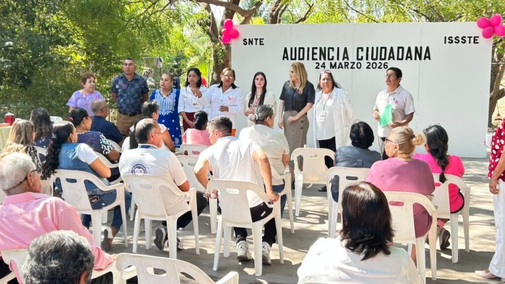 La Unidad de Atención al Derechohabiente de la representación estatal del ISSSTE Colima realizó la 1ra Audiencia Pública en el municipio de Tecomán, en coordinación con la Delegada de los jubilados y agremiados del SNTE, sección VI, la Mtra. Arcelia Martínez Ponce, la Mtra. Delia Gómez, C. Yolanda Valencia Velázquez avales ciudadanas, así como la Dra. Catalina Ángel directora de la UMF.