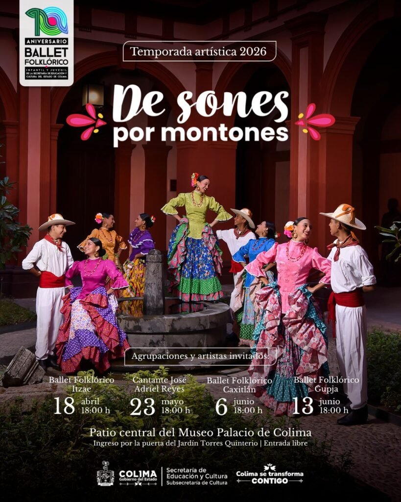 Como parte de las celebraciones del décimo aniversario del Ballet Folklórico Infantil y Juvenil de la Secretaría de Educación y Cultura (SEyC) del Gobierno del Estado de Colima, la Subsecretaría de Cultura anuncia la tercera temporada del espectáculo ‘De sones por montones’, una puesta en escena que celebrará la diversidad dancística de México, con cuatro funciones gratuitas en el Museo Palacio de Colima, en el centro histórico de esta capital.