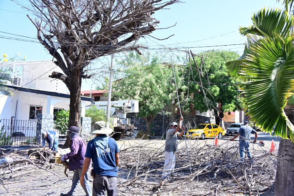 Este esfuerzo, que busca mejorar la seguridad y la imagen urbana de la zona, se llevó a cabo a las inmediaciones de la clínica del ISSSTE, sobre la calle Primo de Verdad, donde los árboles obstruían el paso y afectaban el entorno de la comunidad.