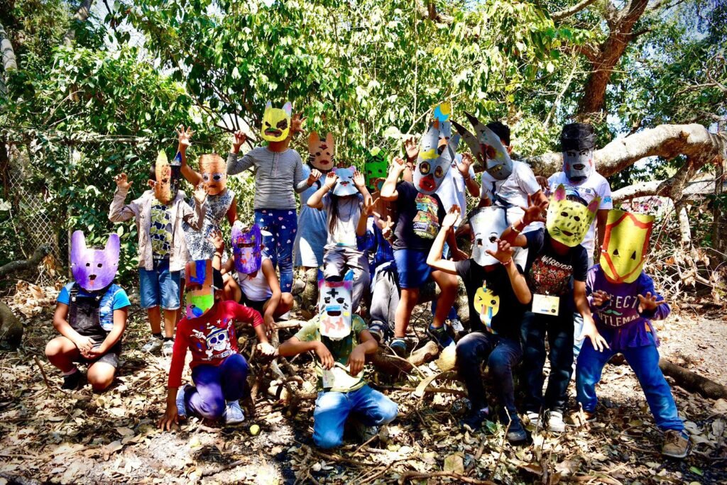 Como parte de las actividades por el Mes de la Niñez, en este taller impartido por Lucía Arciniega Hernández y Diego Candelario Pascual, infantes pintaron máscaras con las que también vivieron la experiencia de “transformarse” en nahuales, curanderos y hechiceras, para interpretar la obra ‘9 señores de la noche’, puesta en escena que rescata y enaltece saberes, símbolos y tradiciones de las culturas indígenas de Colima.